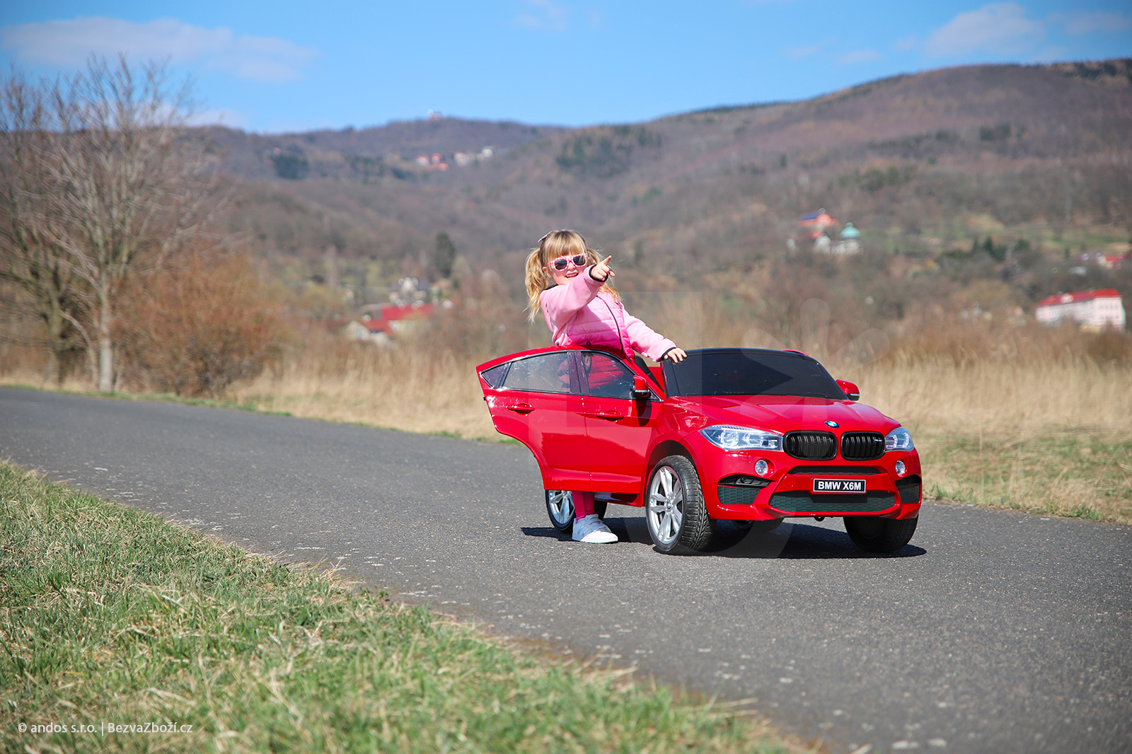 S dálkovým ovladačem máte vozítko pod kontrolou a dítě vám nemůže ujet. Na obrázku vidíte dvoumístné BMW X6 M.