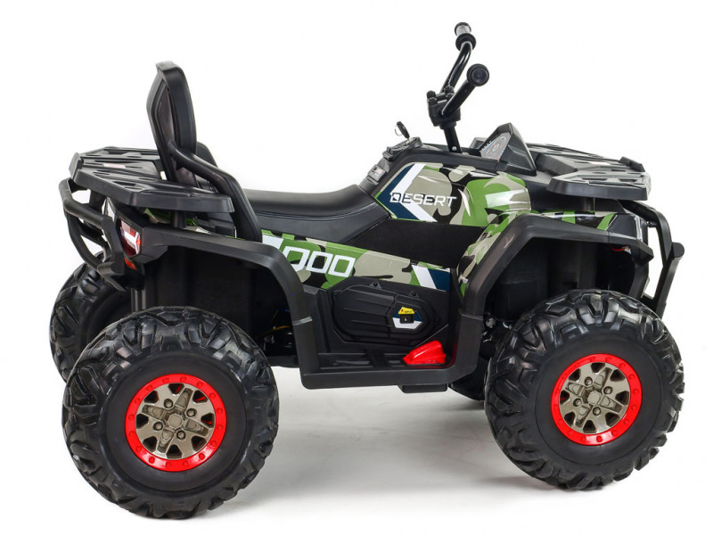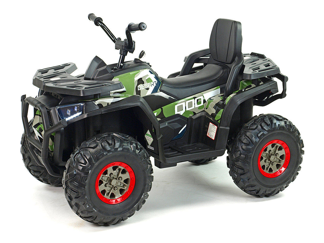 2 motory 12V/45W, 1 baterie 12V/7Ah, pohon zadních kol, 2.4G dálkové ovládání, 2 rychlosti na manuál / 3 na dálkové ovládání, plynulé rozjezdy, AUX, USB, SD karta, přední a zadní LED světla, zvukové efekty, EVA kola, polstrovaná sedačka, odpružení zadní nápravy, ukazatel stavu baterie, startovací klíčky, nosnost až 50 kg, povrchová úprava Celý popis