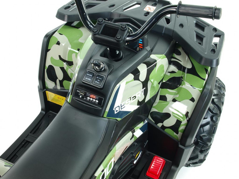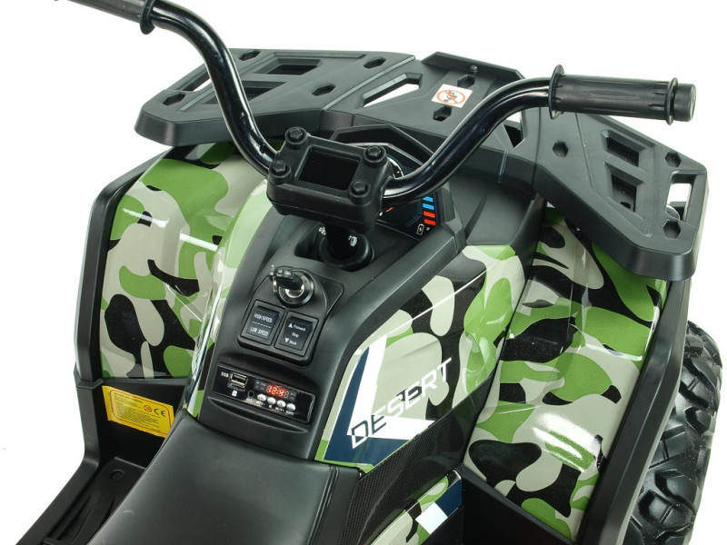 Jízdu zpestří zvuky startování a burácení motoru. Během jízdy si děti mohou zapnout také hudební přehrávač. Ten sice obsahuje několik předem nahraných písniček, nicméně ta pravá sranda samozřejmě začíná až za poslechu vlastní muziky. K tomu můžete použít vstup AUX (3,5mm jack pro kabel), USB nebo SD kartu. Písničky nahrajte například na flashku a tu zapojte do čtyřkolky. Po spuštění začne hudba znít z reproduktorů. Hlasitost zvuků lze ovládat tlačítky u přehrávače, takže se nemusíte vůbec bát, že by čtyřkolka byla příliš hlučná.