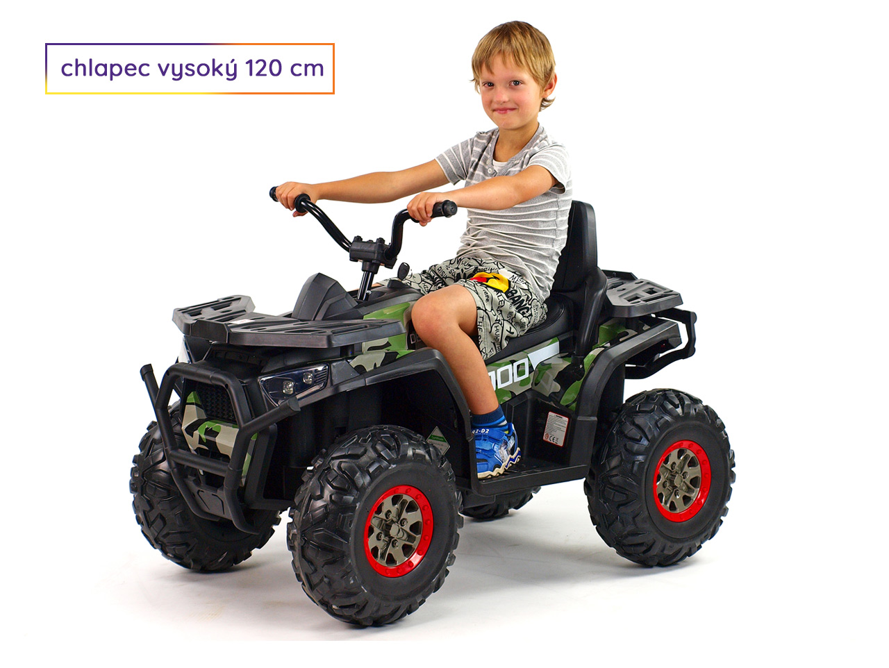 Čtyřkolka zvládne maximální zatížení až 50 kilogramů. Dětem by proto mohla nějaký čas vydržet i když vyrostou. Doporučujeme minimální výšku jezdce přibližně 85 cm.
