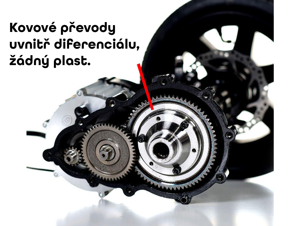 Uvnitř diferenciálu najdete jen kovové převody – pro maximální odolnost a bezstarostný provoz.