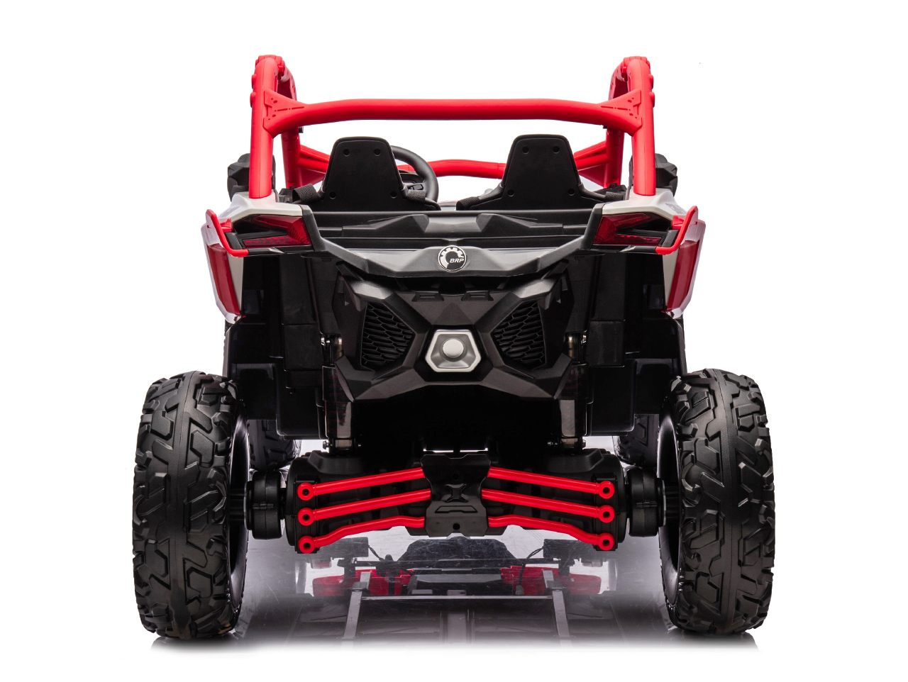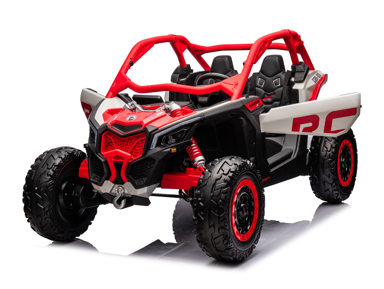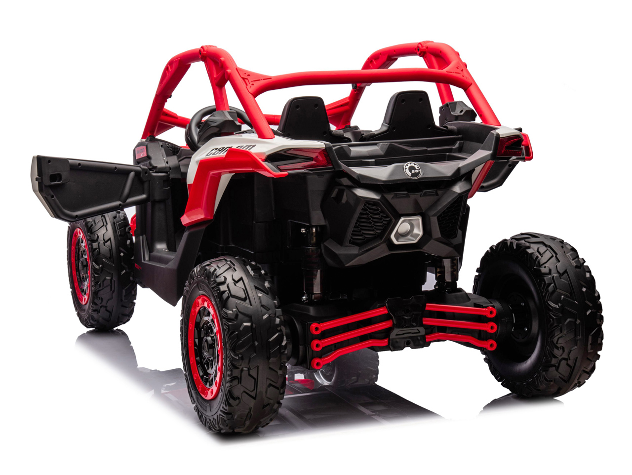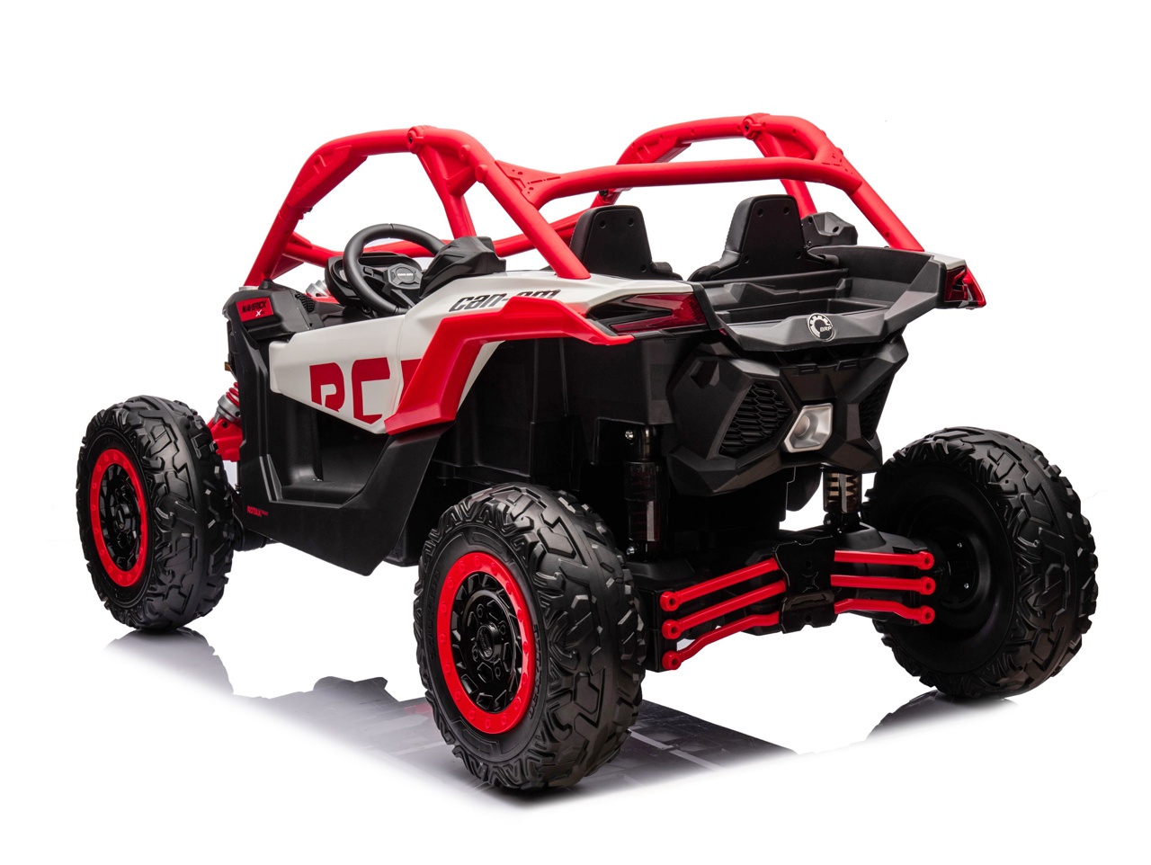 tiché motory 2x 24V/320W, 2x přenosný box s baterií 24V/9Ah (spojené do 24V/18Ah), nosnost 60 kg, 2 rychlosti, max. rychlost 12 km/h, měkké sedačky z eko kůže, posuvná sedačka řidiče - vhodné i pro větší děti, gumová nafukovací kola s ložisky, odpružená zadní náprava, 3bodové bezpečnostní pásy, plynulý rozjezd, LED světla, Bluetooth, USB, AUX, SD karta, FM rádio, licence BRP Can-Am Celý popis