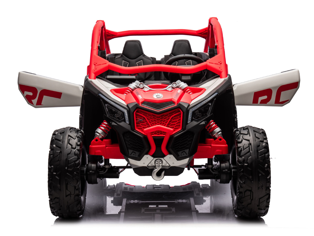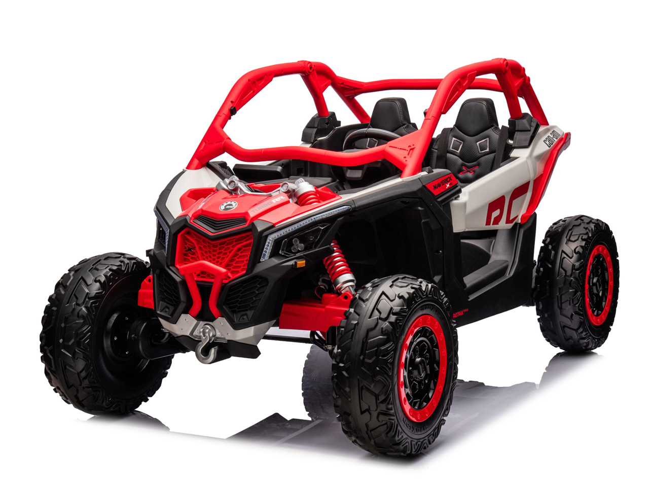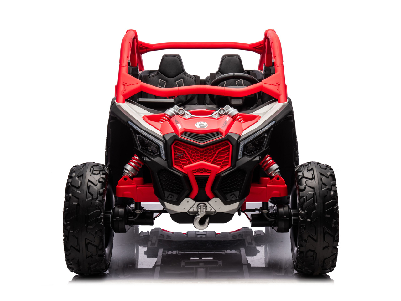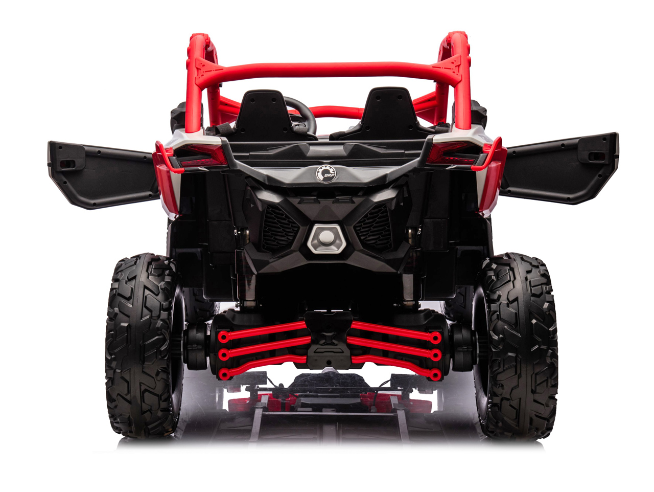 tiché motory 2x 24V/320W, 2x přenosný box s baterií 24V/9Ah (spojené do 24V/18Ah), nosnost 60 kg, 2 rychlosti, max. rychlost 12 km/h, měkké sedačky z eko kůže, posuvná sedačka řidiče - vhodné i pro větší děti, gumová nafukovací kola s ložisky, odpružená zadní náprava, 3bodové bezpečnostní pásy, plynulý rozjezd, LED světla, Bluetooth, USB, AUX, SD karta, FM rádio, licence BRP Can-Am Celý popis