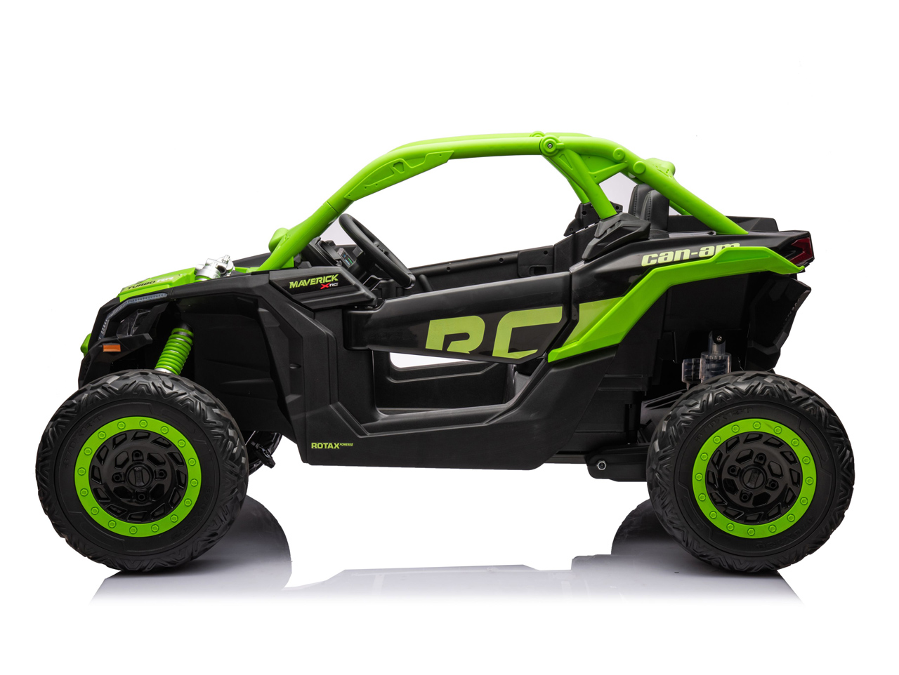 Can-Am Maverick pohání dva elektromotory 24V/320W, které i se dvěma jezdci dosáhnou rychlosti 12 km/h. Tyto motory jsou výrazně tišší než běžné motory v elektrických autíčkách, takže si děti užijí jízdu naplno, aniž by rušily okolí. To oceníte vy i sousedi.