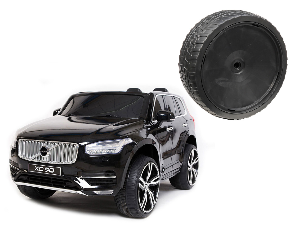 Určeno pro dětské elektrické autíčko Volvo XC90 (model č. XC90). Kolo je univerzální, lze tudíž použít na kteroukoliv stranu. Vyrobeno z EVA materiálu. Průměr 290 mm, šířka 109 mm, lze nasadit na osu o průměru 12 mm. Celý popis