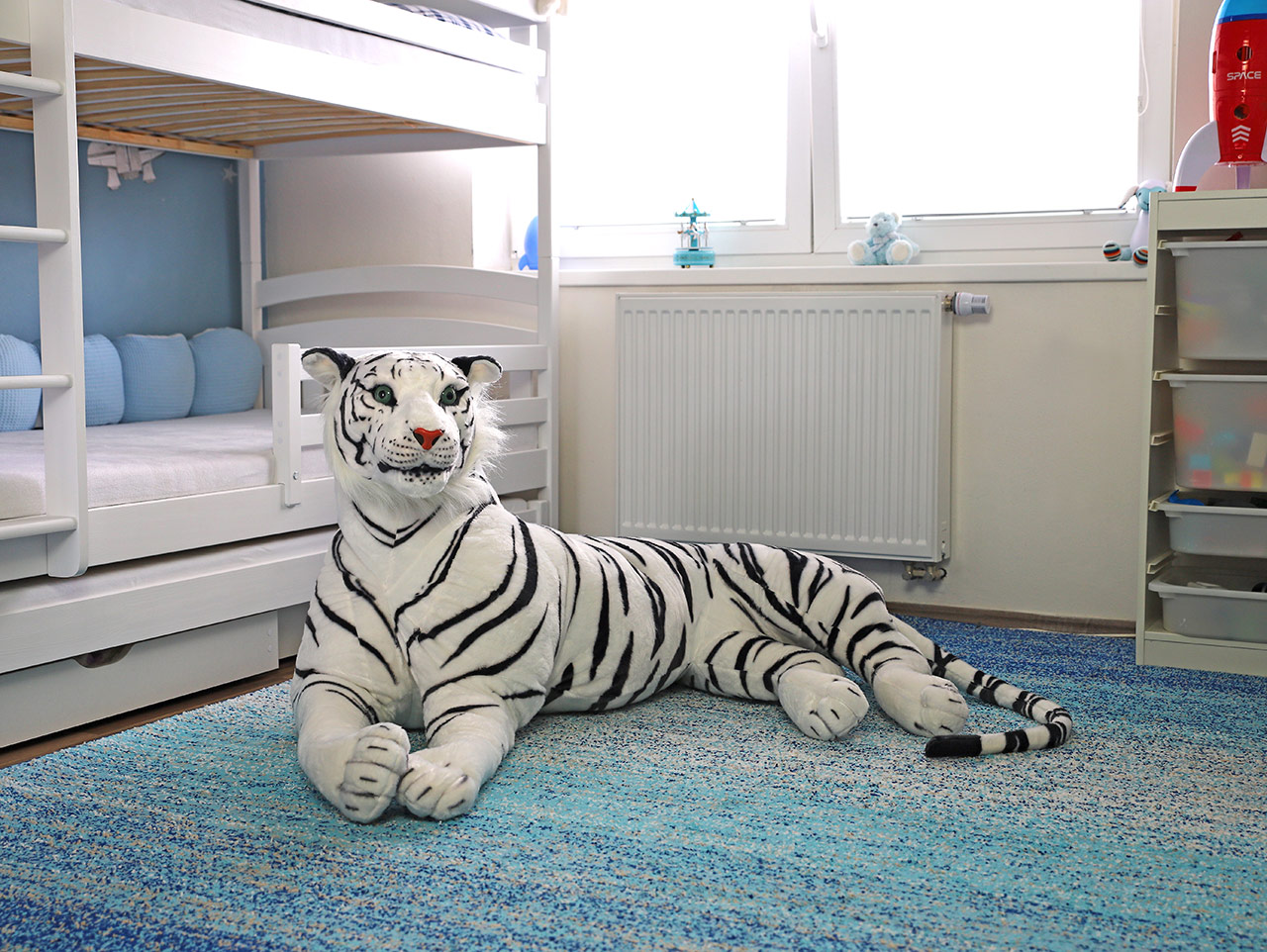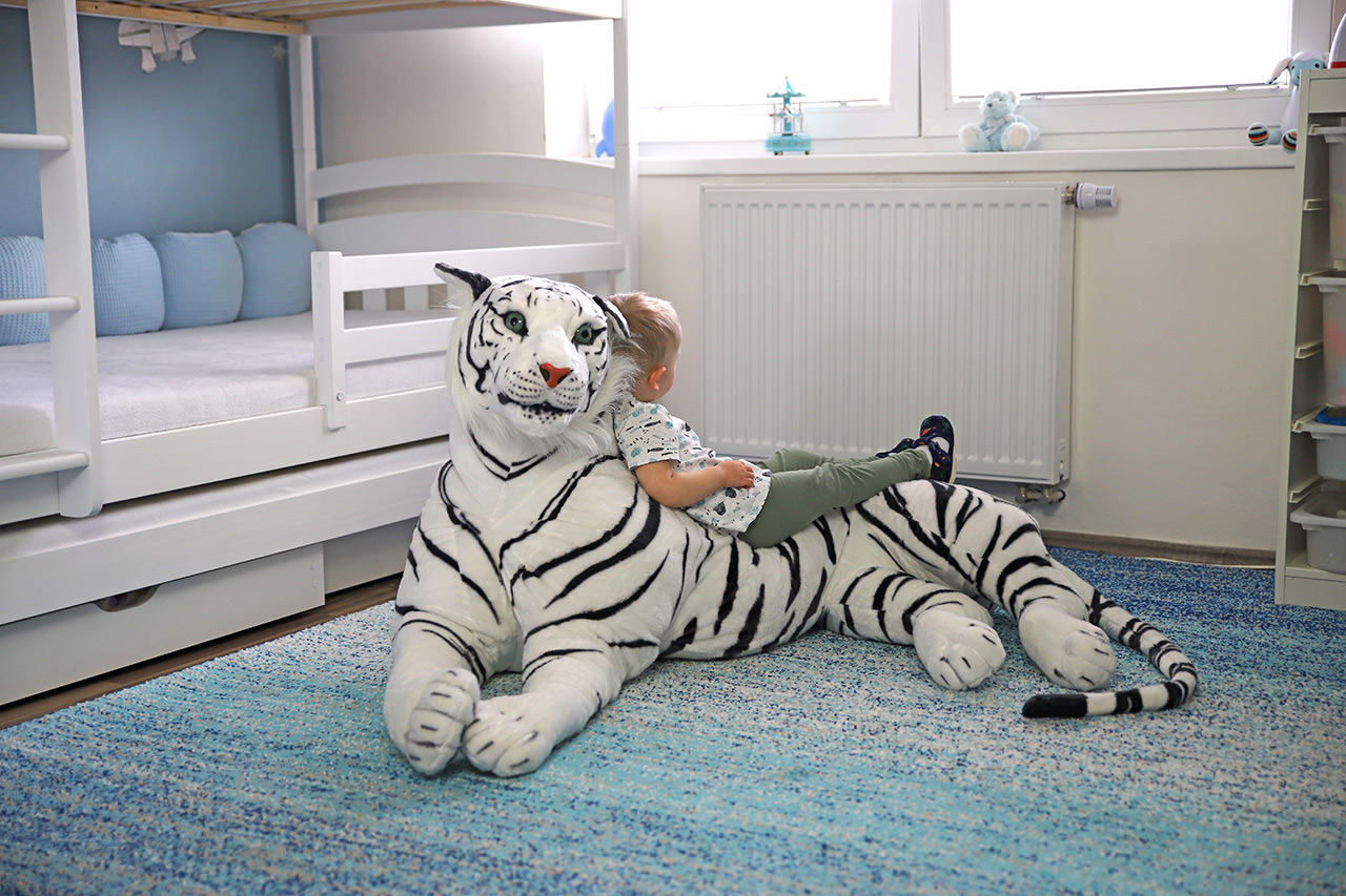 Plyšák tygr bílý udělá radost každému milovníkovi exotických zvířat. Tygr takovéto velikosti se hodí na mazlení a lenošení. V dětském pokoji se vyjímá jako neobyčejná dekorace.