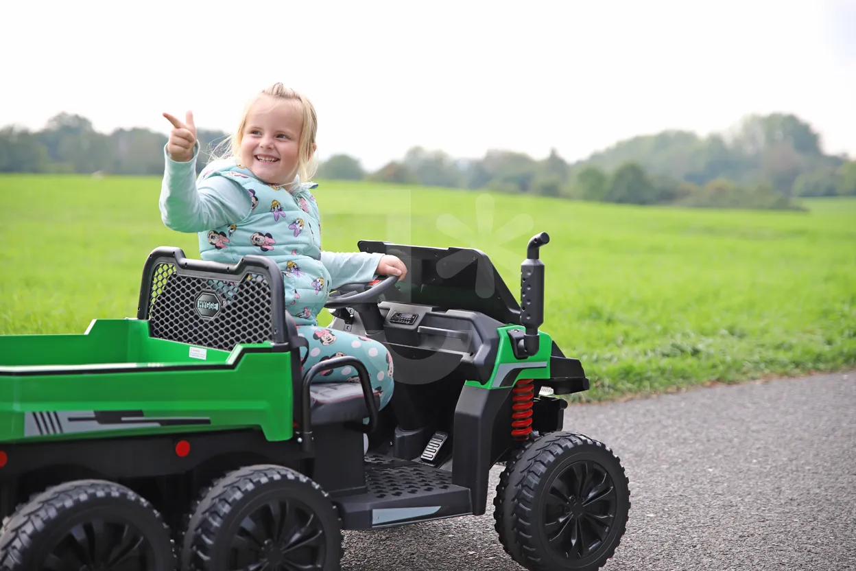 Šestikolový Farmer Truck je nejprodávanější elektrické autíčko pro děti za rok 2022. Uvnitř se nachází čtyři 200W motory.