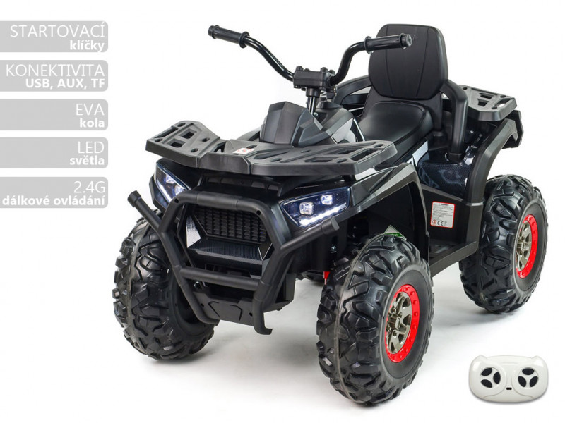 Ke čtyřkolce X-MAX 607 obdržíte 2.4G bluetooth dálkový ovladač, který má před manuální jízdou na pedál přednost. Nad vozítkem tak máte vždy plnou kontrolu a můžete jej kdykoliv zastavit i přes to, že by dítě drželo nohu na pedálu. Ovladač přijde vhod také v případě, kdy si děti na samotné řízení zatím zcela samy netroufnou. Čtyřkolku pak můžete bez problémů ovládat na dálku a děti tak mohou řízení přijít postupně na chuť.