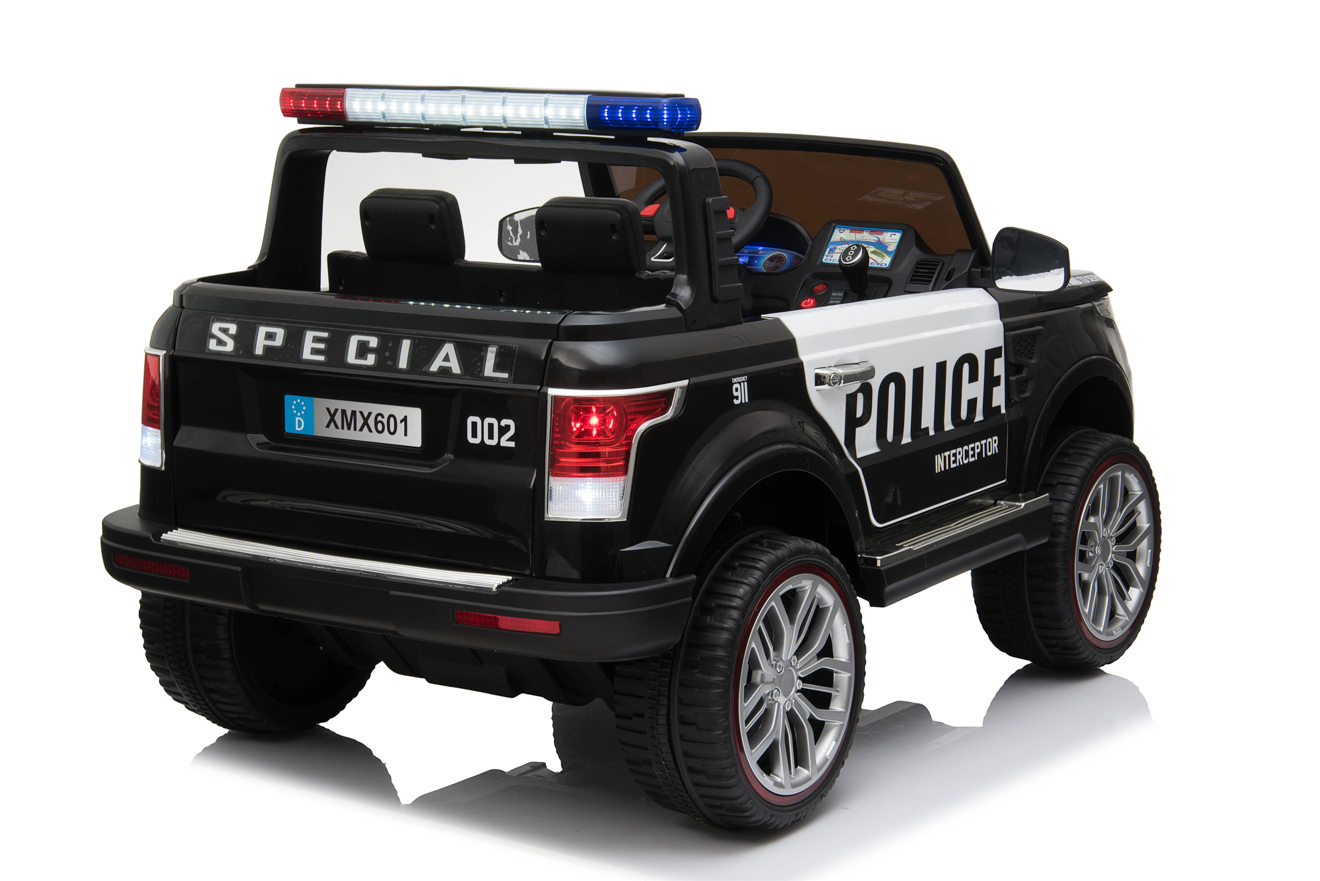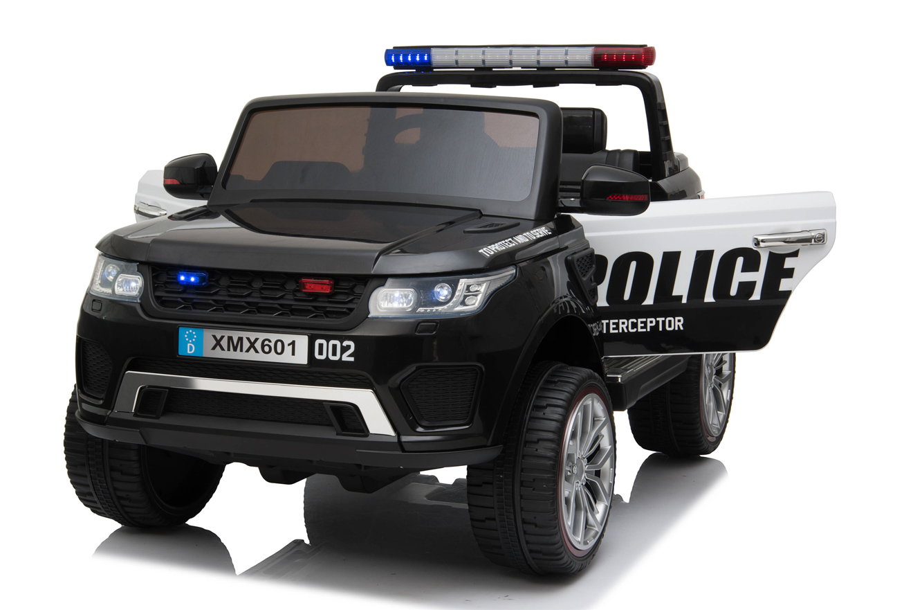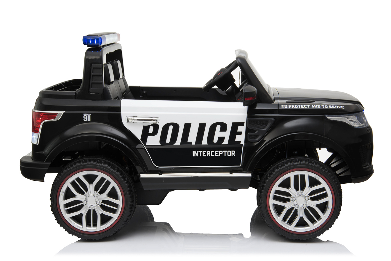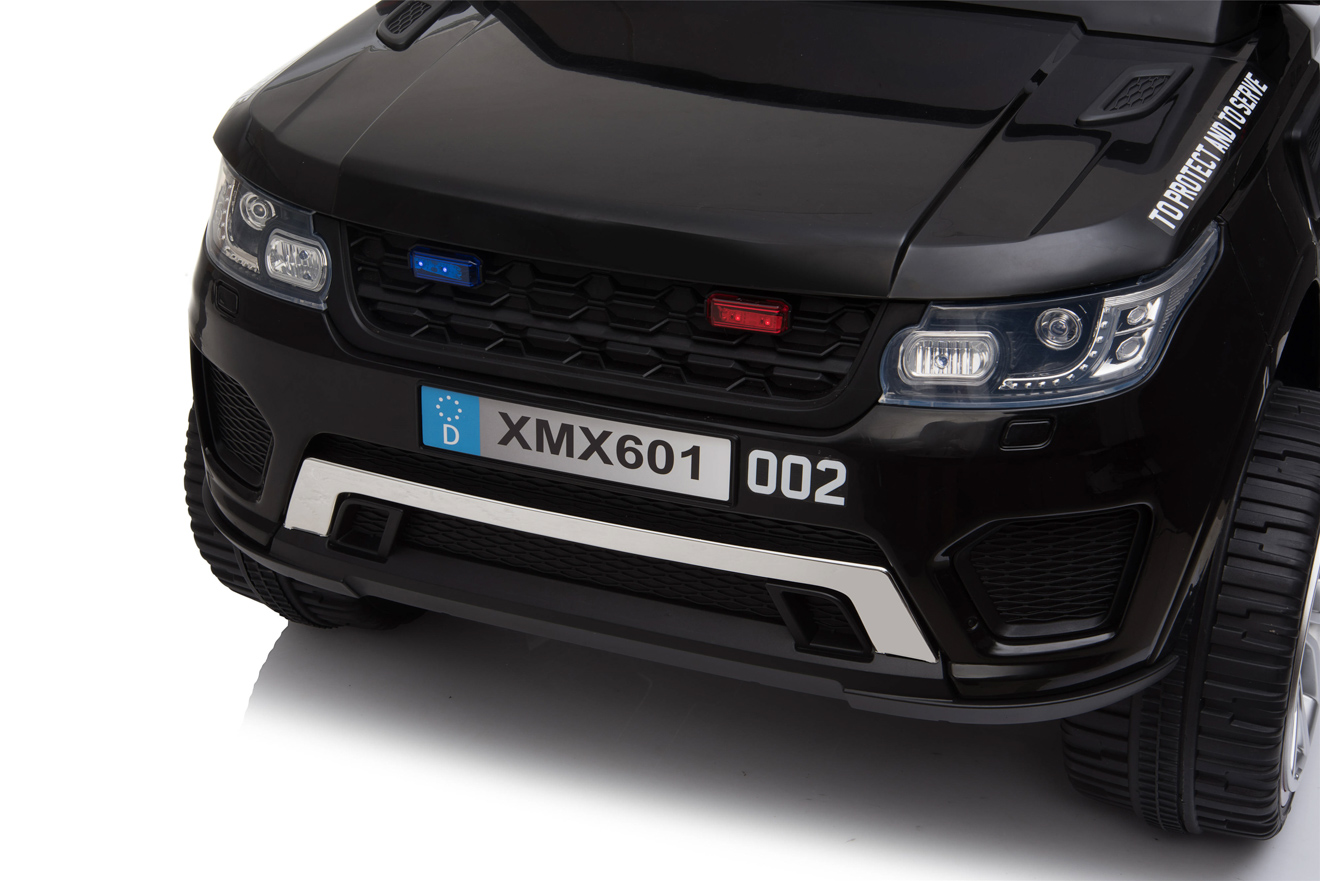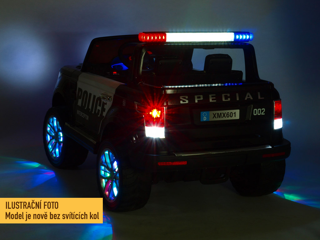 4 motory 12V/45W, baterie 12V/10Ah, pohon všech kol, přepínač pohonu 2x2 a 4x4, 2.4G dálkový ovladač s funkcí plné kontroly, EVA kola, 2 rychlosti na manuál, 3 rychlosti na dálkové ovládní, policejní LED osvětlení, zvukové efekty, klakson, siréna, AUX/USB/SD, odpružená zadní náprava, otvíratelné dveře, ukazatel stavu baterie, zadní úložný prostor, polstrovaná sedačka, madlo pro ruční tažení, dvoum... Celý popis