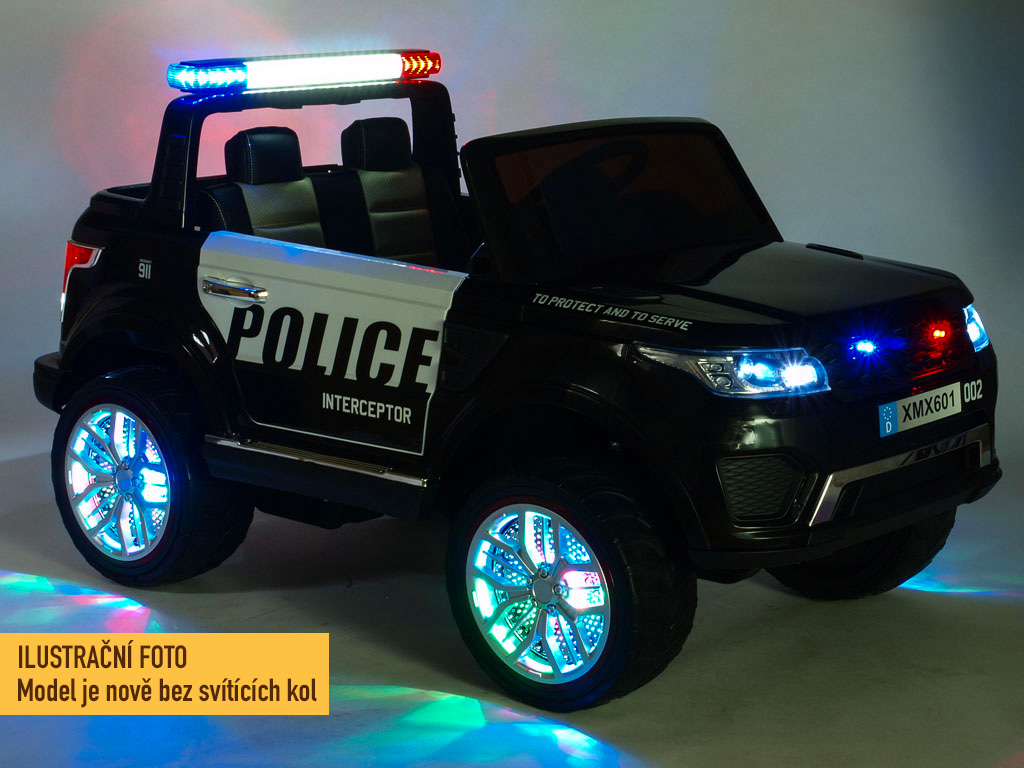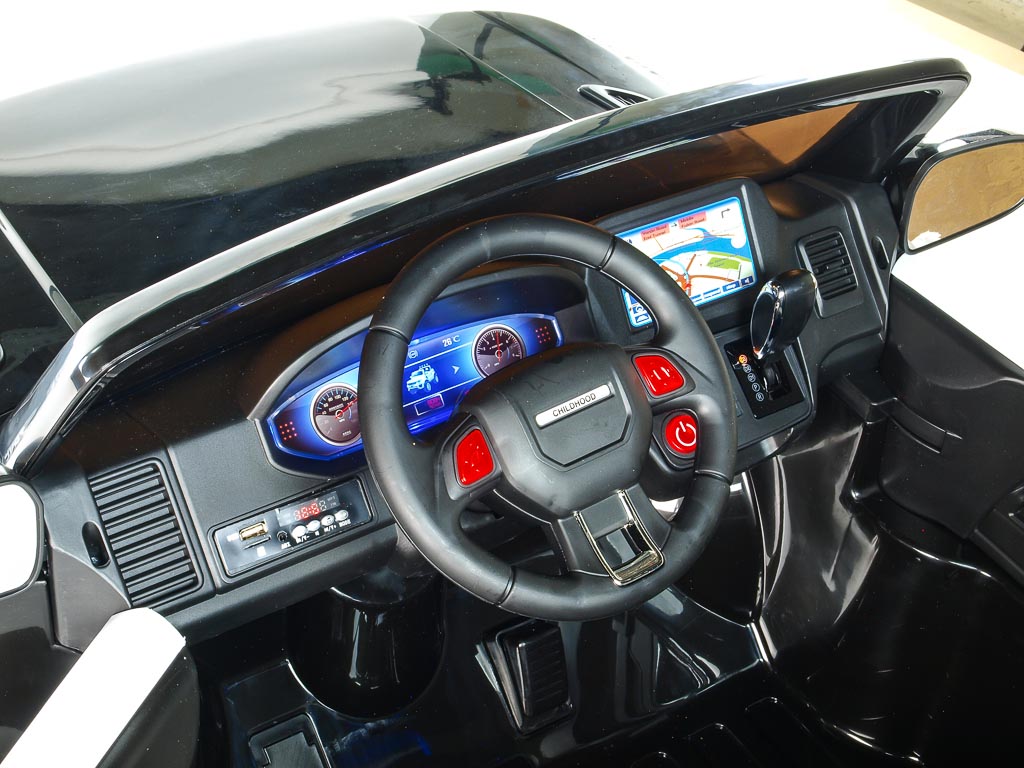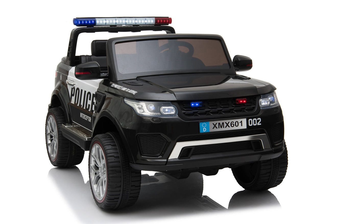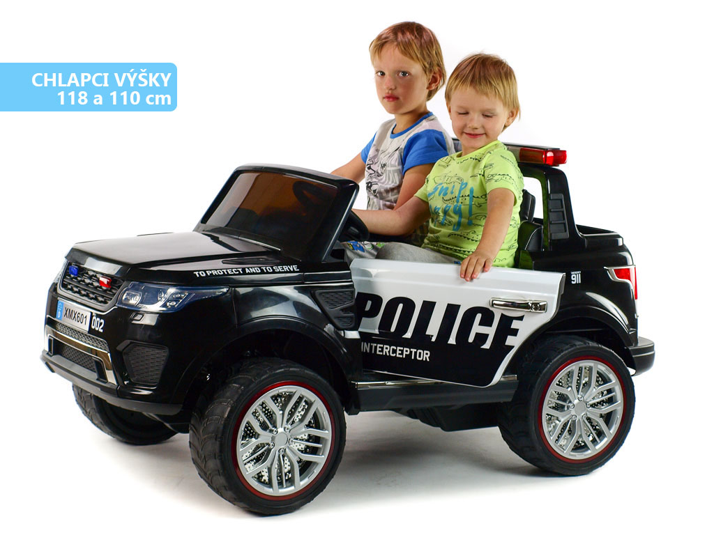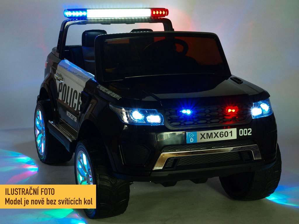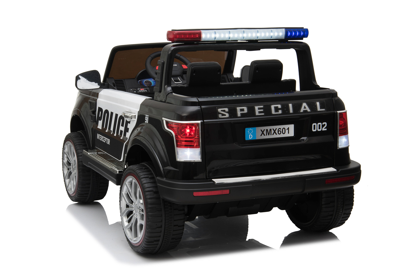 4 motory 12V/45W, baterie 12V/10Ah, pohon všech kol, přepínač pohonu 2x2 a 4x4, 2.4G dálkový ovladač s funkcí plné kontroly, EVA kola, 2 rychlosti na manuál, 3 rychlosti na dálkové ovládní, policejní LED osvětlení, zvukové efekty, klakson, siréna, AUX/USB/SD, odpružená zadní náprava, otvíratelné dveře, ukazatel stavu baterie, zadní úložný prostor, polstrovaná sedačka, madlo pro ruční tažení, dvoum... Celý popis