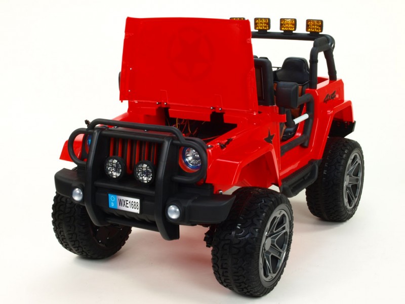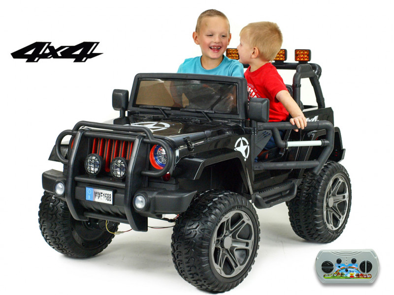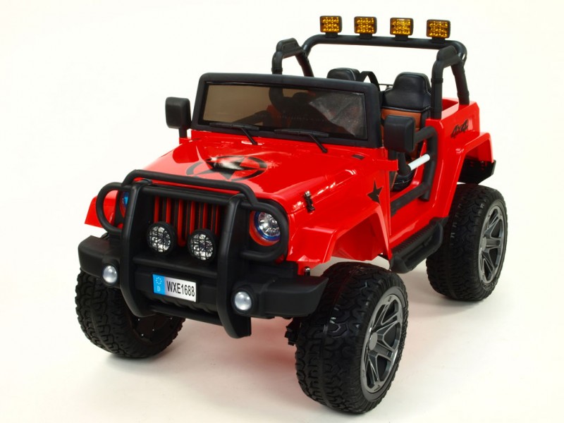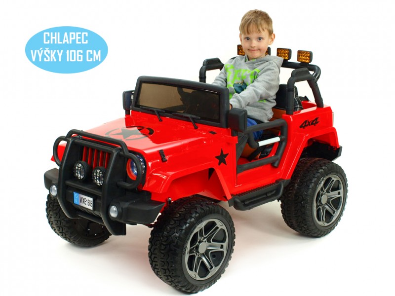 Pořádný tereňák pro děti, co si chtějí skutečně zařádit! Dva zadní (45W / 12V) a dva přední (35W / 12V) motory umožňují Wrangleru jízdu i v terénu. Díky náhonu na všechna čtyři kola se tak děti nemusí bát vyrazit na nerovný či travnatý povrch.
