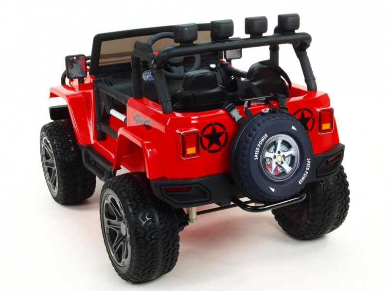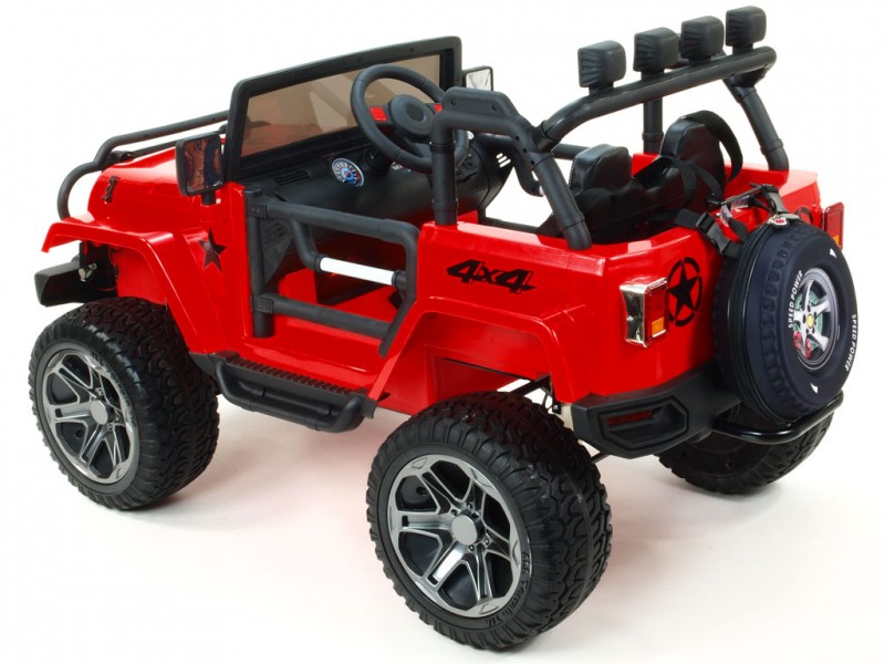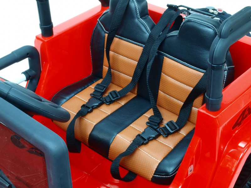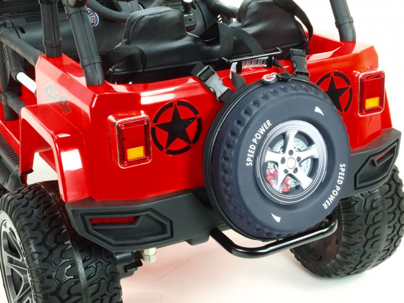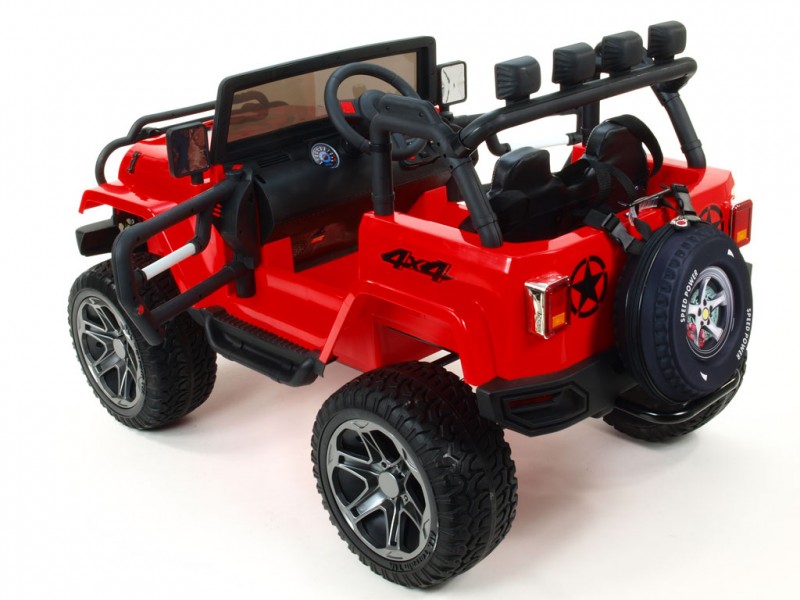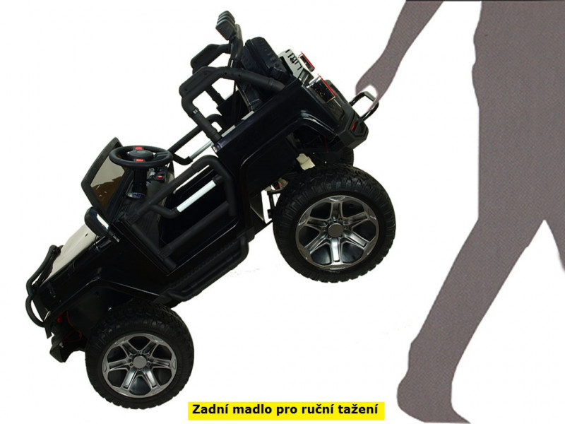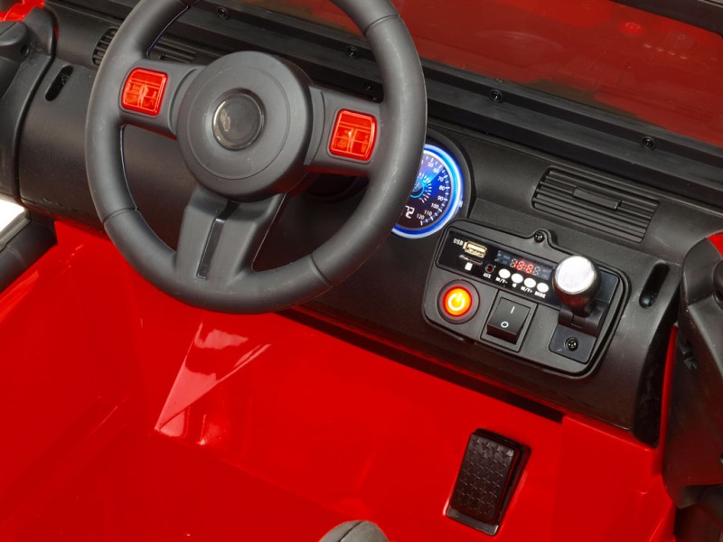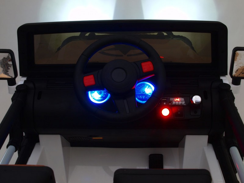 4 motory (2x 12V/45W a 2x 12V/35W), pohon všech 4 kol, 2 baterie 12V/10Ah (celková kapacita 20 Ah), 2.4G DO, 6 rychlostí, MP3, USB, SD vstup, čalouněná sedačka, odpružené nápravy, zvukové a světelné efekty, otvíratelné dveře a kapota, EVA kola Celý popis