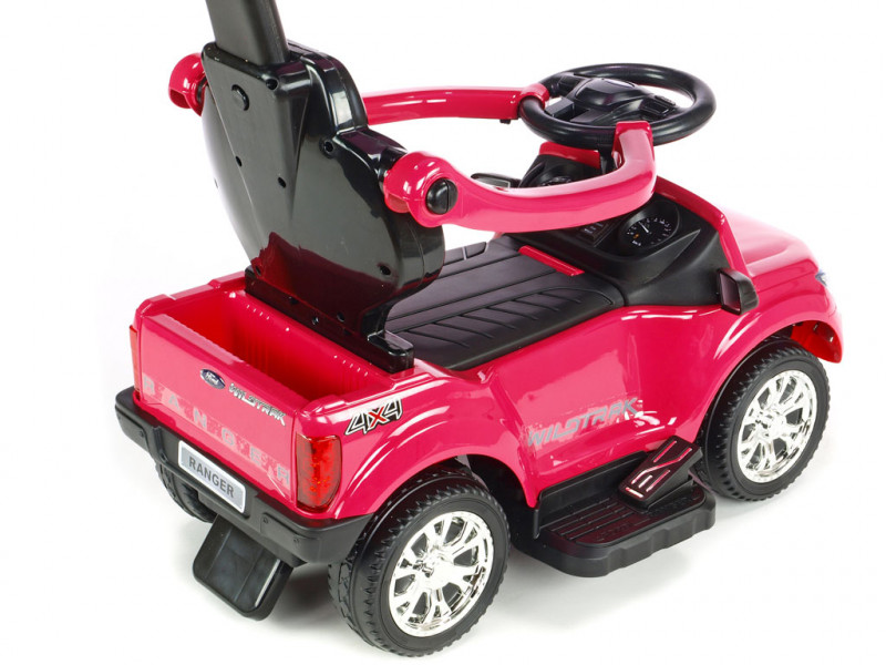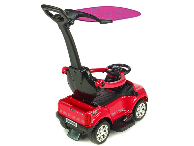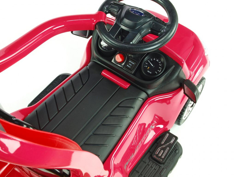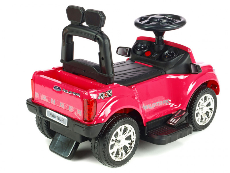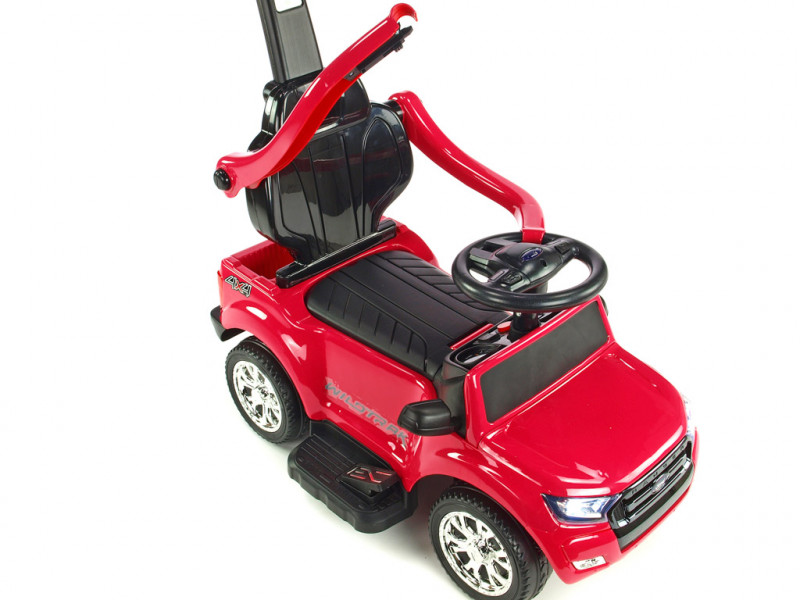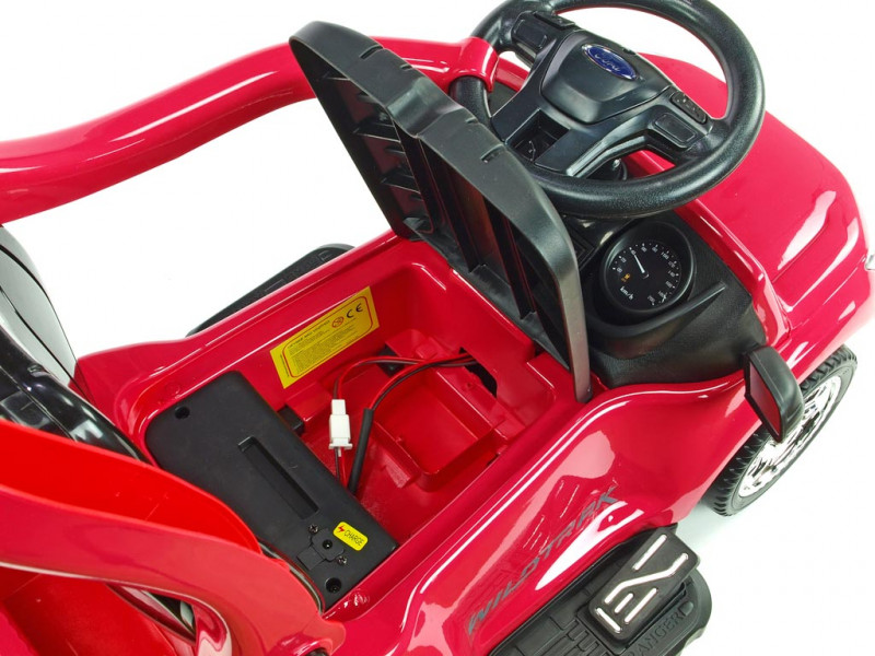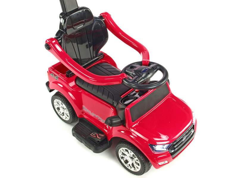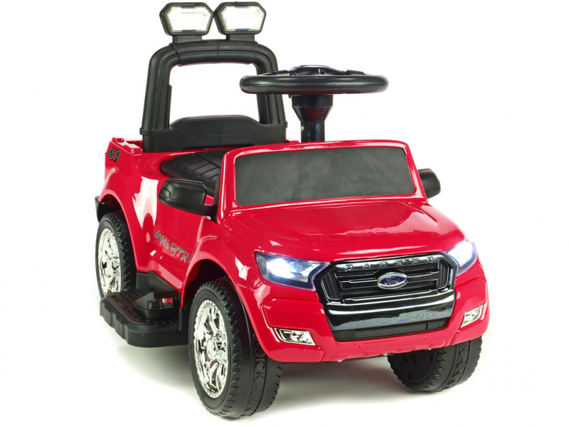 Jedinečné autíčko značky Ford s přesným a detailním zpracovaním originálního modelu, které potěší ty nejmenší řidiče. Součástí balení vozítka jsou dvě opěradla, mezi kterými si můžete vybrat dle potřeby (viz fotogalerie). Dále se zde nabízí možnost snadného nasazení bezpečnostních madel, vodící tyče a sklopné stříšky, která může posloužit jako příjemné stínítko . Jízda vpřed i vzad na dva možné způsoby - prvním je klasické manuální řízení přes nožní pedál, druhý je tlačení vodící tyčí. Vodící tyč využijí zejména rodiče méně zkušených řidičů, kteří si však techniku manuálního ovládání brzy sami osvojí. Vozítko je opatřené jedním elektrickým motorem (24W / 6V) a náhonem jednoho zadního kola. Ford Ranger je vybavený svítícími předními LED světly a zvukovými efekty jako klakson, muzika a další. Pokud byste si přáli dětem jízdu ještě o něco zpestřit, rozhodně využijete zabudované vstupy pro TF (paměťovou) kartu a MP3 přehrávač. Stačí tedy vložit paměťovou kartu nebo k autíčku připojit Vaše MP3 zařízení a auto začne hudbu přehrávat v reproduktorech. Pod sedačkou a v zadní části auta se nachází úložný prostor vhodný pro drobnosti jako klíče, svačinka, apod. Díky kvalitní konstrukci a pevným ochranným madlům kolem sedačky si i ti nejmladší užijí spoustu bezpečné zábavy. Autíčko váží pouze 7 kg, takže je navíc snadno přenosné a přepravitelné. Určeno pro děti od 2 let.