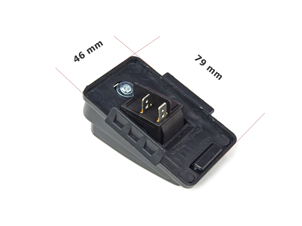 Náhradní pedál se spínačem 2 pin pro dětská elektrická vozítka. Obsahuje integrovaný spínač. Rozměr spodního rámečku 79×46 mm. Pedál není univerzální – před nákupem porovnejte provedení, rozměry a typ zapojení s původním dílem. Celý popis