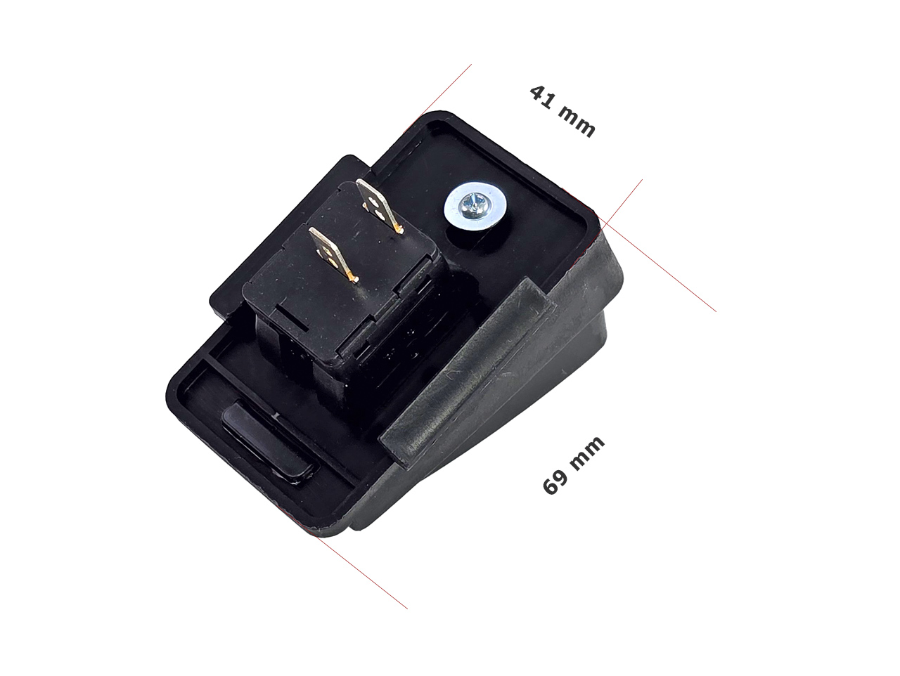 Náhradní pedál se spínačem 2 pin pro dětská elektrická vozítka. Obsahuje integrovaný spínač. Rozměr spodního rámečku 69×41 mm. Pedál není univerzální – před nákupem porovnejte provedení, rozměry a typ zapojení s původním dílem. Celý popis