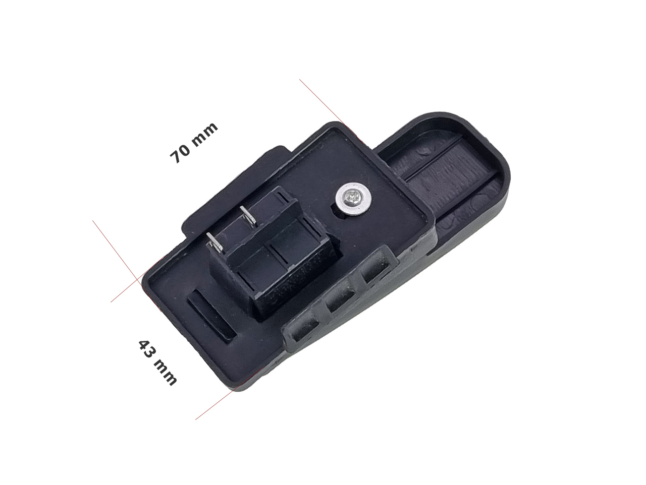 Náhradní pedál se spínačem 2 pin pro dětská elektrická vozítka. Obsahuje integrovaný spínač. Rozměr spodního rámečku 70×43 mm. Pedál není univerzální – před nákupem porovnejte provedení, rozměry a typ zapojení s původním dílem. Celý popis