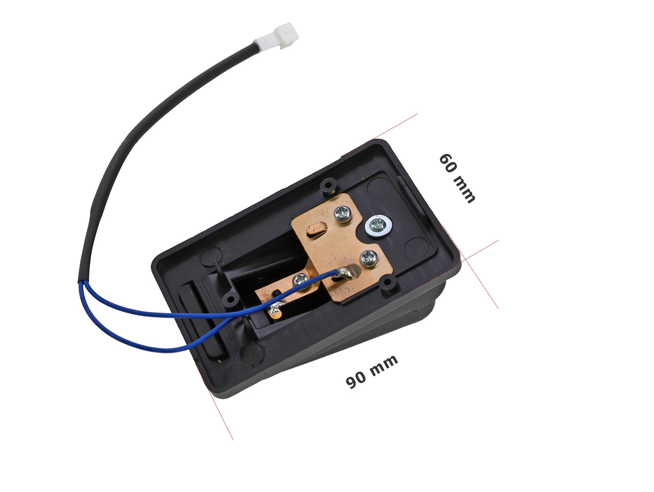 Náhradní pedál bez spínače pro dětská elektrická vozítka. Vybaven mosaznými kontaktními plíšky, rozměr spodního rámečku 90×60 mm. Pedál není univerzální – před nákupem porovnejte provedení a rozměry s vaším původním pedálem. Celý popis