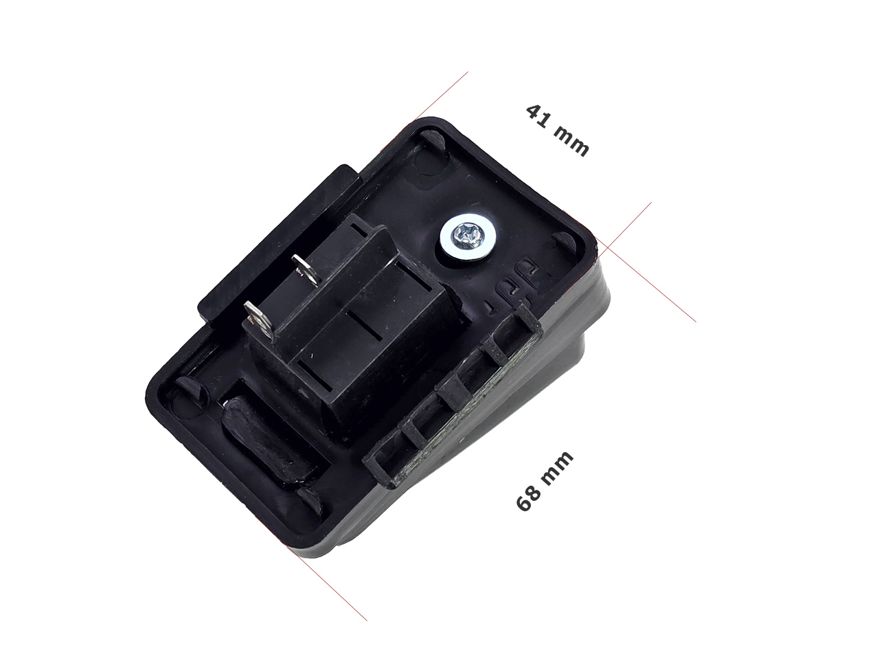 Náhradní pedál se spínačem 2 pin pro dětská elektrická vozítka. Obsahuje integrovaný spínač. Rozměr spodního rámečku 68x41 mm. Pedál není univerzální – před nákupem porovnejte provedení, rozměry a typ zapojení s původním dílem. Celý popis