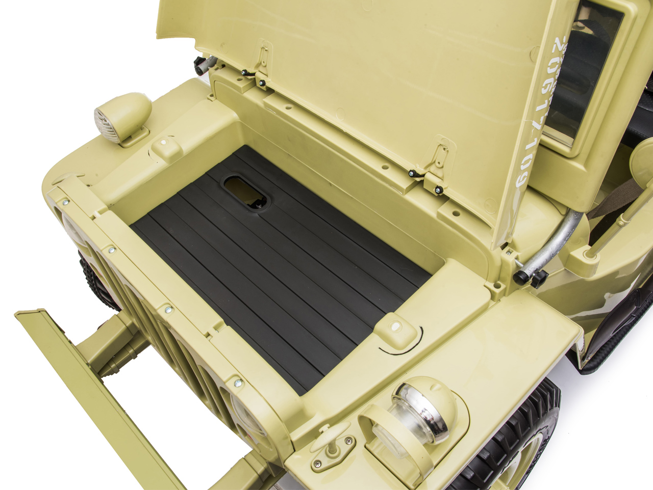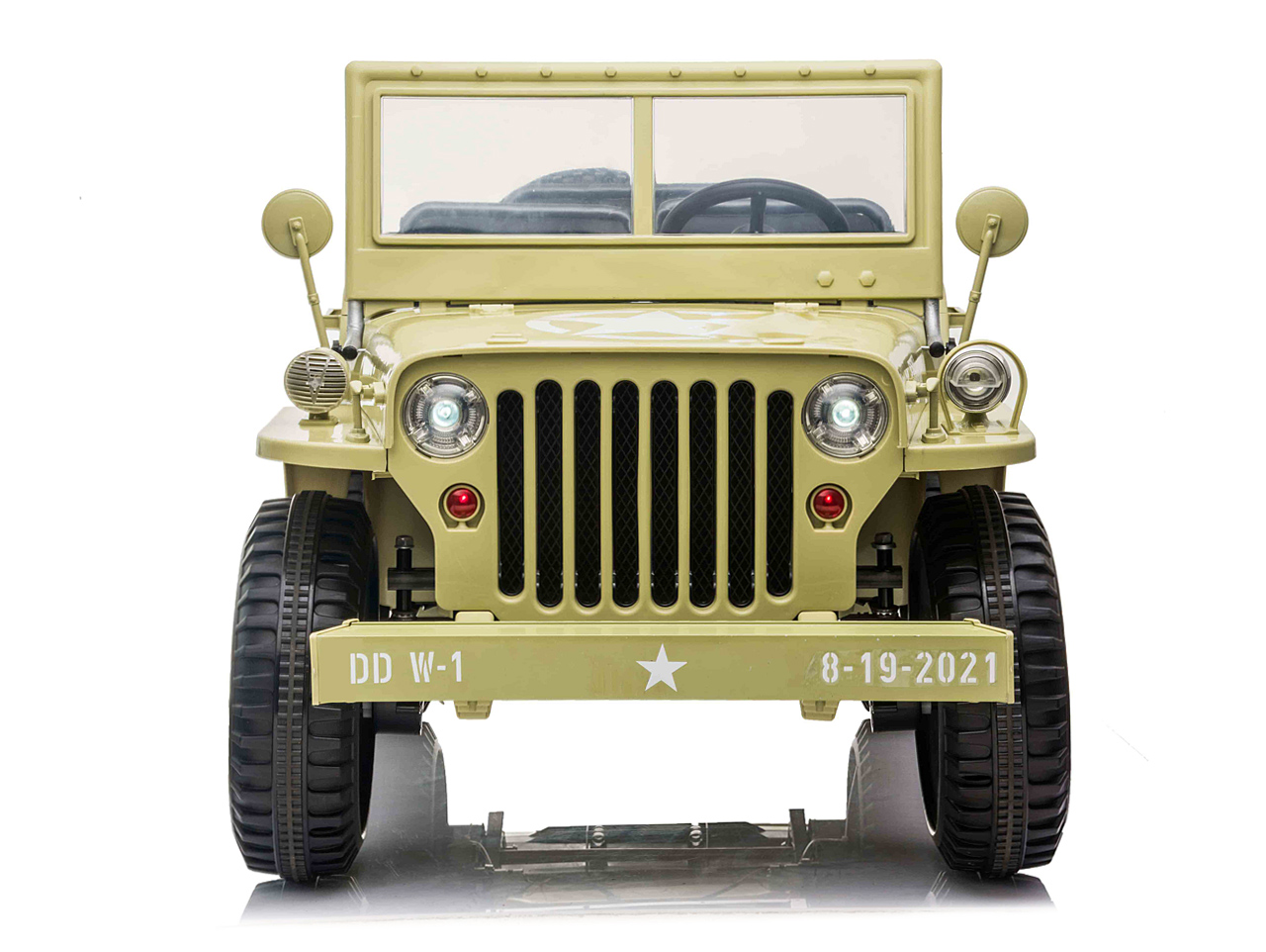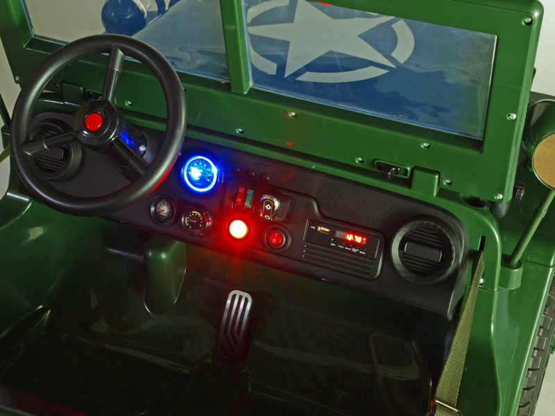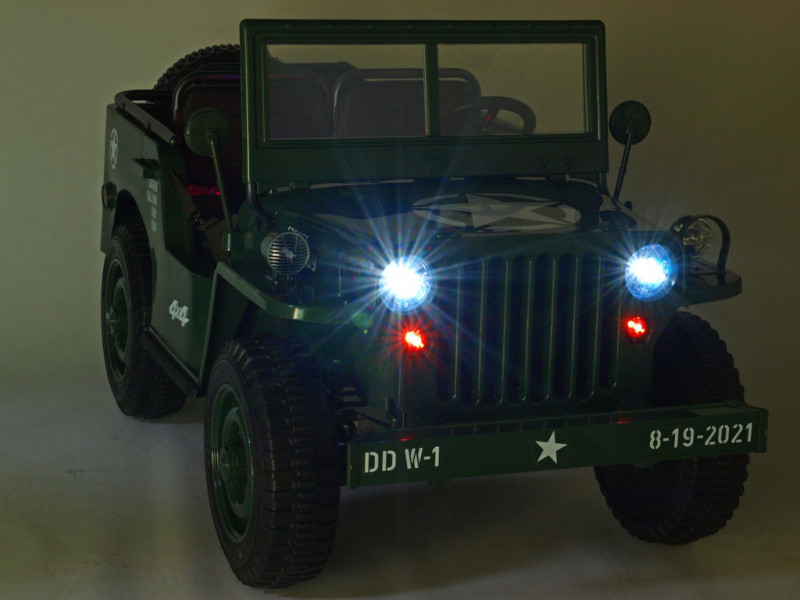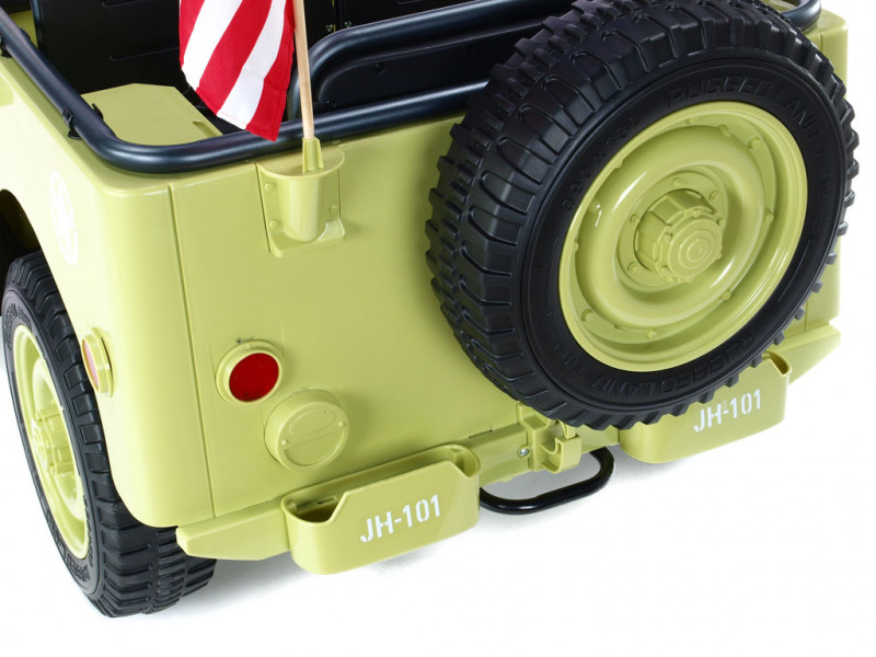 Když vojenské auto, tak džíp Willys, to věděli už před 80 lety. Elektrické autíčko Willys tak dostalo dokonalý vzhled armádního vozidla a je propracované do nejmenšího detailu. Ikonická přední maska, masivní kola, hliníkový přední nárazník nebo praktická lopata pro stavbu příkopů.
