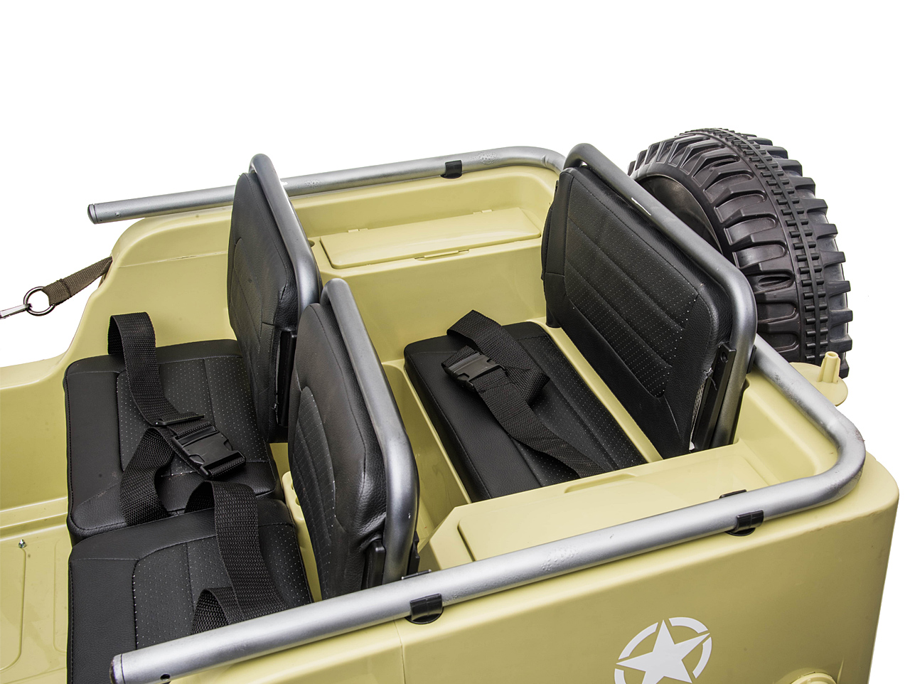 Když jsou děti tři a jedno musí tlapkat pěšky nebo zůstat sedět na lavičce, tak to třetí pláče. Rodič to pak musí řešit a určovat pořadí. S džípem Willys toto nehrozí, protože je vybaven třemi plnohodnotnými sedačkami. Maximální nosnost 60 kg navíc zaručuje, že se mohou skvěle bavit i větší děti.